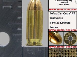 9mm Browning Long, by norma for Sweden Military. One Cartridge