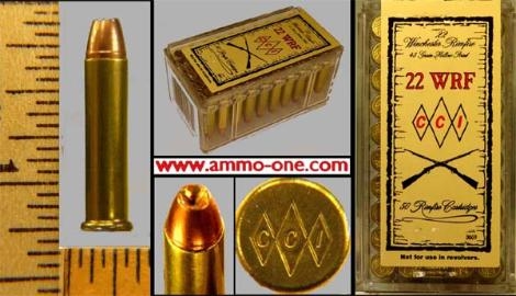 One Box of 50 Cartridges: 22 WRF or .22 Winchester rim fire, special run by C.C.I. now owner by Ammunition Accessories Inc. in Lewiston, Idaho, USA. 3 Diamonds with CCI Diamonds on head stamp, loaded with a 45 grain copper coated H.P. (hollow point) projectile.