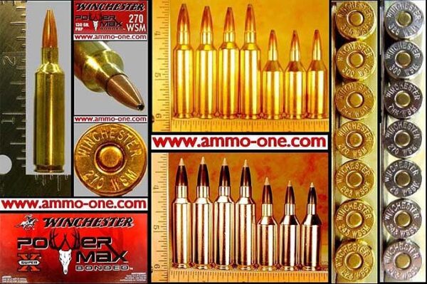 One Cartridge, Not a Box: .270 Winchester Short Magnum (270 WSM) produced by Winchester using new Brass Cases, with a â WINCHESTER 270 WSMâ Head-Stamp and a 130 grain Power Max Bonded or JHP (Jacketed Hollow Point) projectile. *Patina (Tarnish) happens to all brass cases, even in new (old Stock). Most collectors like the Patina , if you do not, you can remove it with simple brass polish.