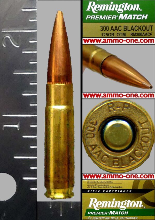 One Cartridge, not a box: .300ACC Blackout, factory loaded by Remington Arms Company LLC using new Remington brass cases with “R-P 300 AAC BLACKOUT” Head-Stamp, loaded with 125 gr ACCUTIP projectile.