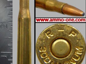One Cartridge, not a box: .300 H&H Magnum, Belted Rimless. Older Factory production by Norma of Sweden using (then) new Norma brass cases with “NORMA Re 300 H&H MAG” Head-Stamp and loaded with a older 180 grain NCSJSP (Nickel Coated Jacketed Soft Point) projectile and NP on the Primer.