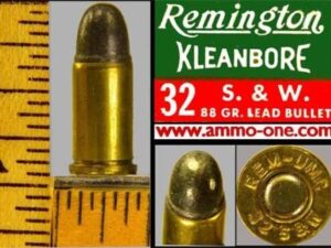 One Cartridge, not a box: .327 Federal Magnum by Federal Cartridge Company, using new Federal Brass cases with “FC 327 FEDERAL MAG” head-stamp and loaded with a 100 grain JSP (Jacketed Soft Point).