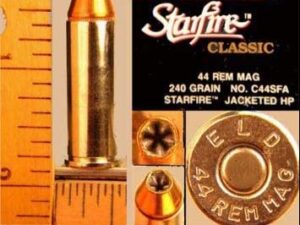 One Cartridge, not a box: .44 Remington Magnum by Remington Arms Company with “R-P REM MAG ” Head stamp and 240 grain JSP (Jacketed Soft Point) projectile.