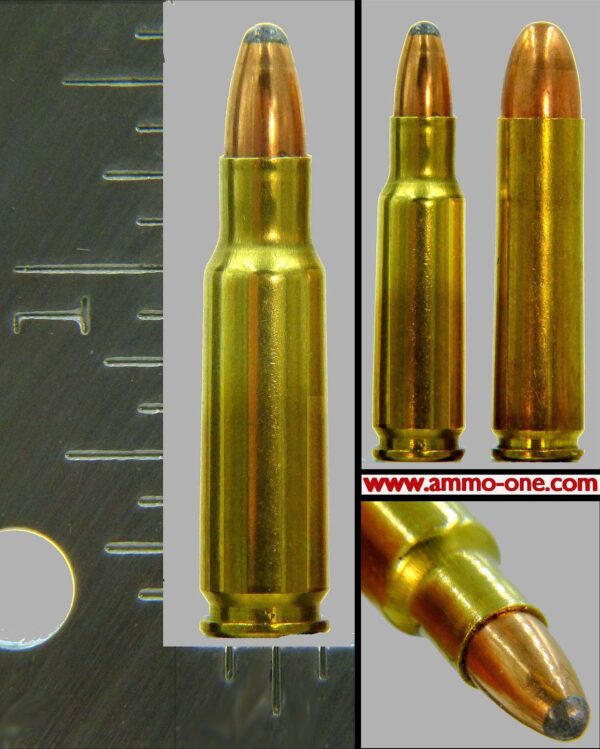 One Cartridge: 5.7x33mm Johnson Spitfire, made from 30 carbine cases, mixed H/S loaded with a 40 grain JSP (Jacketed Soft Point) projectile.