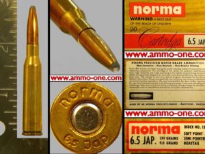 History of the6.5x50mm Japanese Cartridge:The 6.5x50mm Japanese was introduced in 1897. based on the 6.5mm Mauser & Mannlicher cartridges and was used by the Japanese Military in the Model 38 Japanese bolt-action rifle until the end of World War II. It has a “Semi-Rimmed” Case and is a short cartridge compared to most 6.5mm diameter Military cartridges.Many Japanese Model 38 in 6.5×50 were brought back into the USA after World War II and some rifles were re-chambered to other calibers, due to the shortage of ammunition, so make sure your rifle is truly chambered in 6.5×50 Japanese before buying ammunition for it.
