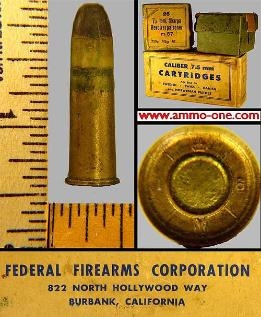 History of this cartridge: Old Federal Cartridge Company re-package of 2 boxes labeled 7.5mm Skarpa Revolver patroner M/87, Tillv Mbg 19 , Paper patch , lubricated lead projectiles Head -Stamp reads Skarpa Revolver patroner “1 – 6 M (with Swedish Crest)” M= Marieberg