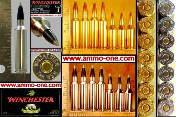 One Cartridge, Not a Box: 7mm Winchester Short Magnum (7mm WSM) produced by Winchester using new “Nickel” plated brass cases, with a â WINCHESTER 7mm WSMâ Head-Stamp and a 140 grain Ballistic Tip projectile.
