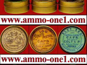 “United States Army Caps by UMC Percussion Cap” Label, One Replica Empty Tin. Click on Picture or Title for more detail